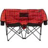 Keep your drinks close at hand with the Kozy Bear Chair! The central cooler (it fits a six pack!) provides both you and your camping buddy easy access to your drinks all night. The slightly curved chair design grants a little more shoulder space between each other and the perfect amount of heat around the campfire, it has zippered mesh pockets to store your valuable (no more lost phone!), has a padded back and armrests, and two beverage holders keeping you Kozy on all your outdoor adventures! Size 39.5"(H) x 57"(W) x 29.5"(D). Rated for 500 LBS Carry bag included.