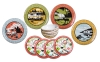 Camping just got cooler with this unbreakable melamine BPA free set of RV dishes. Camp Casual introduces a 12 piece melamine dish set for the RV enthusiast who wants to add fun and style to any camping trip or gathering. Each box contains four unique 11" dinner plates, four 8" salad plates and four 6" bowls with richly colored and artistic RV graphics. Top shelf dishwasher safe. Not suitable for microwave use.